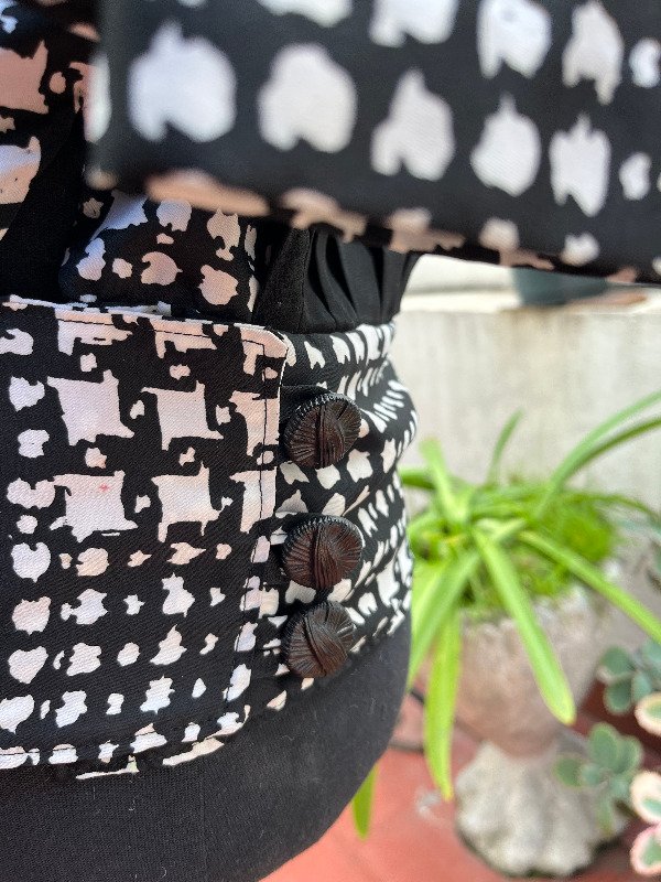 se abotona en la espalda alta con un boton a presion
